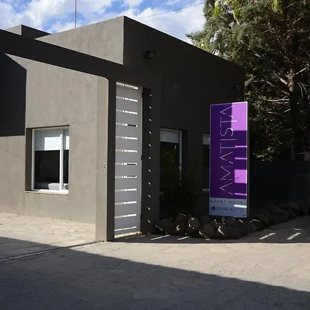 Amatista Aparthotel Chos Malal, som ligger 1 km från Parroquia María Auxiliadora, har Wi Fi i hela boendet. Detta hotell erbjuder 8 rum med utsikt över bergen.